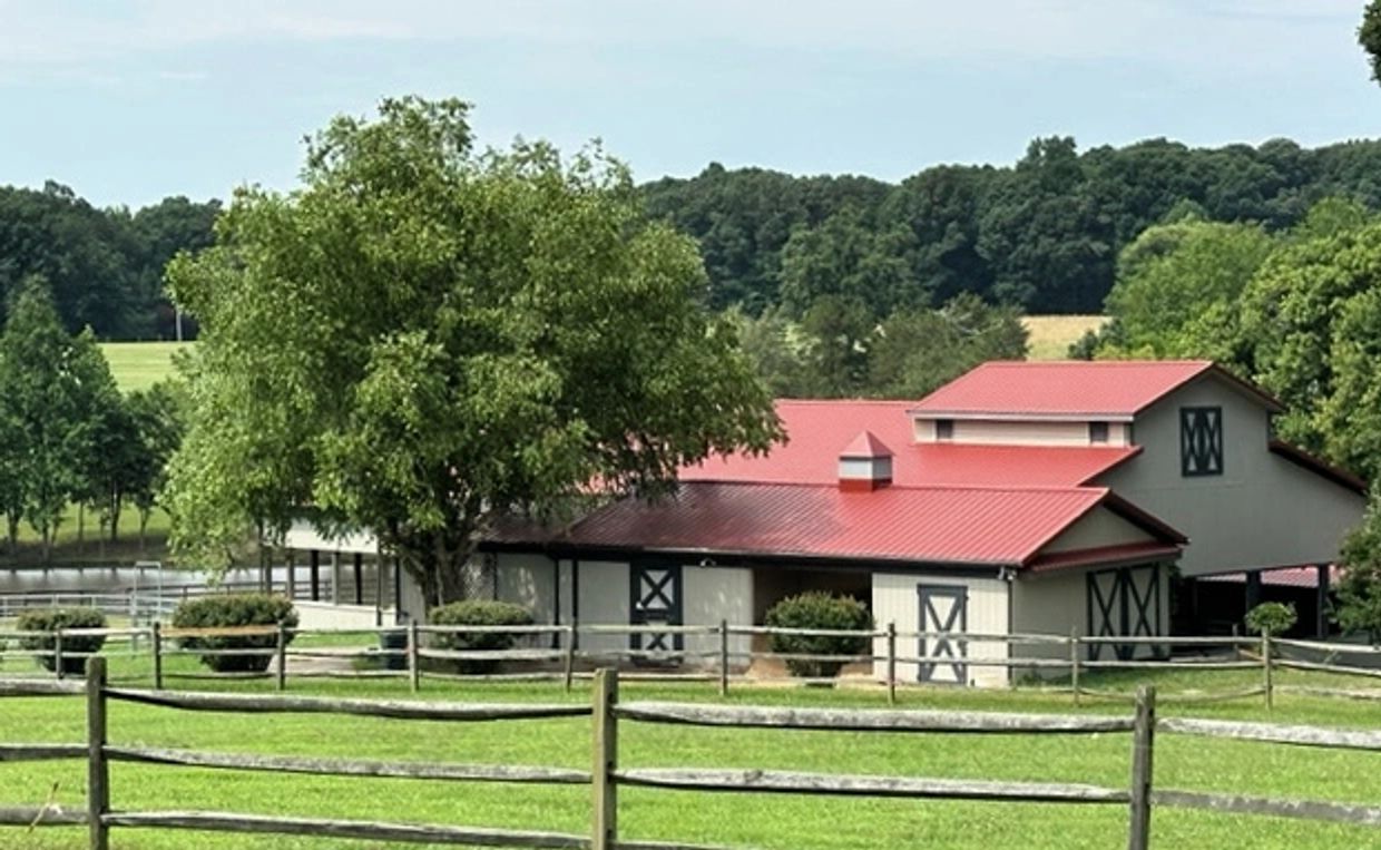 The thoughtful site plans incorporated their deep love and stewardship of nature and horses, This helped them build their vision of sprawling pastures, rolling hills, horses, dogs, the pond, the barns, two training rings, beautiful oaks, rose bushes and so many blooming trees!